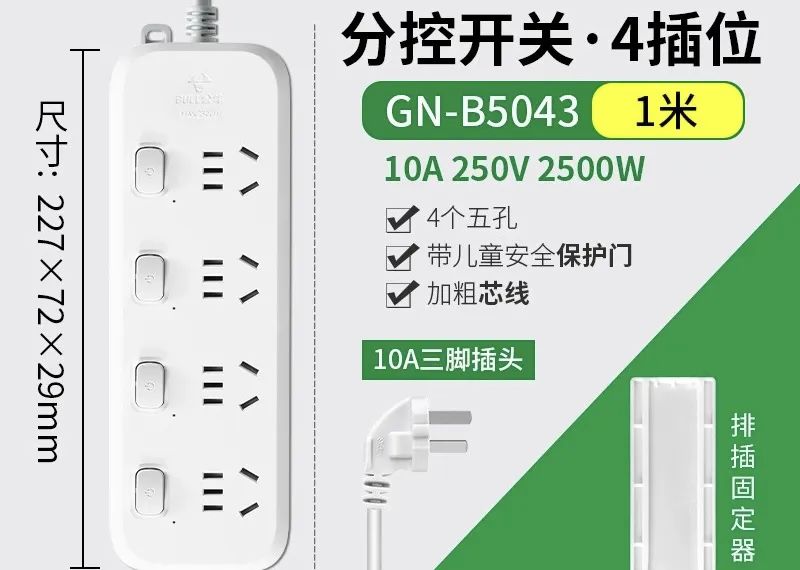 功率比较高的电器,不仅要分控,更要注意电源线。电源延长线不能盘绕,盘绕不安全,买短的!买短的!1米或者0.8米