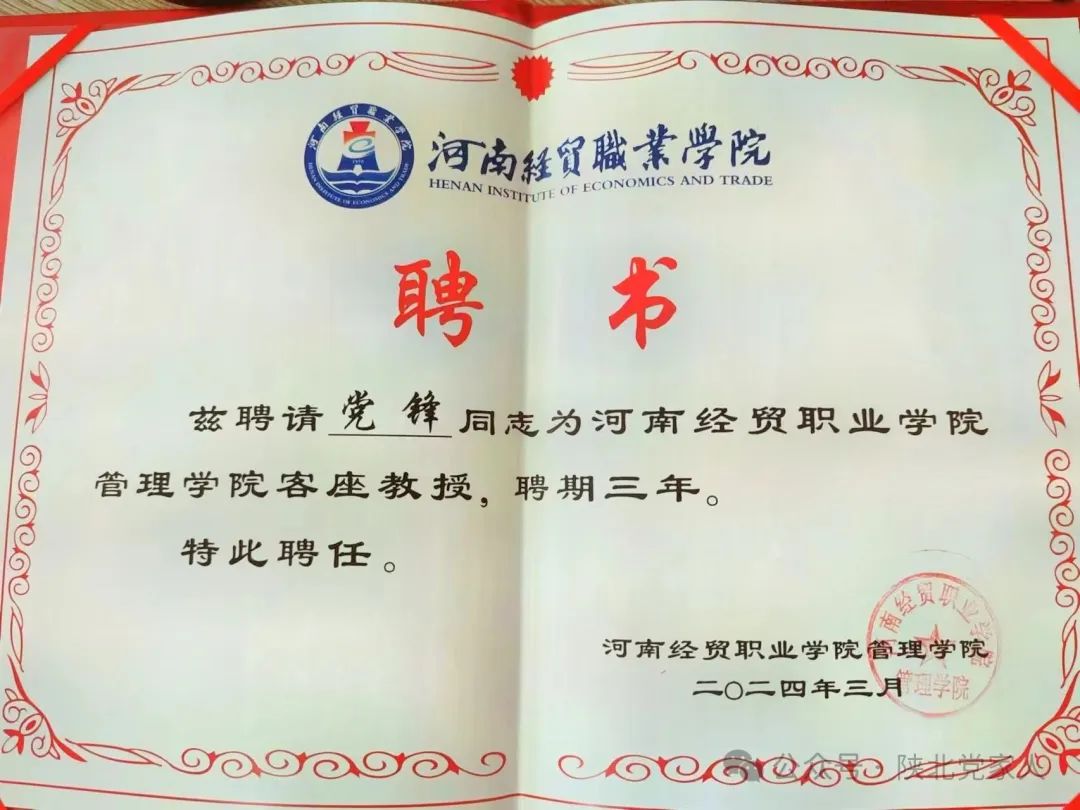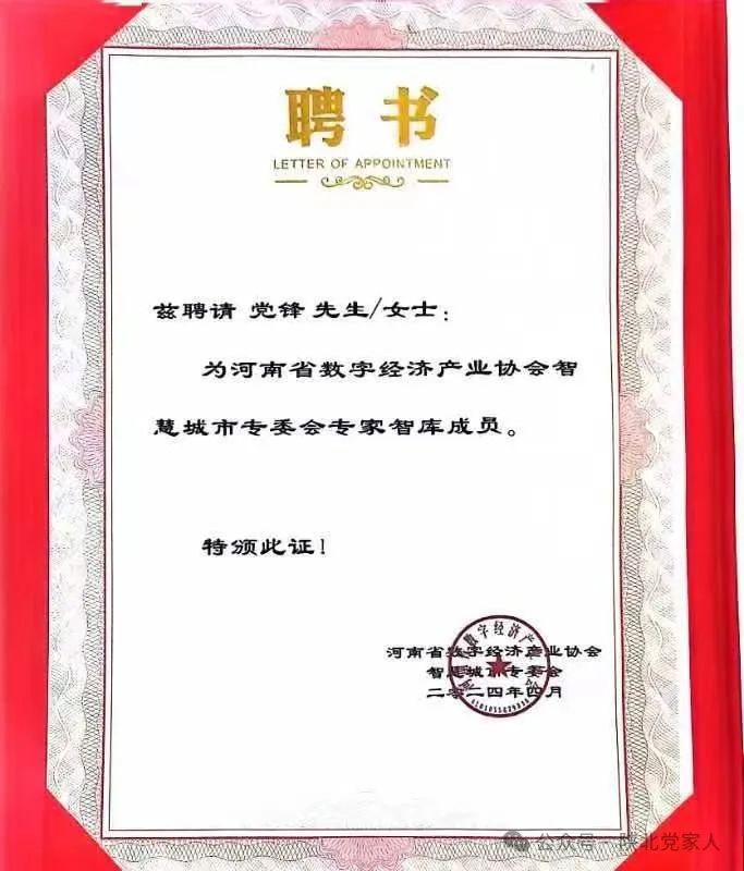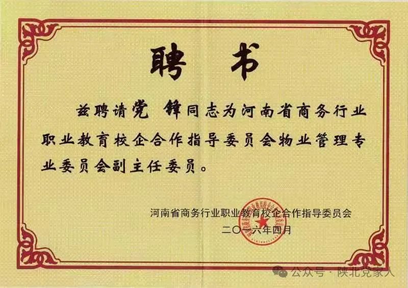 郑州市产业园区商会特聘专家,致力于基层治理和三方联动、业主组织和谐建设研究、智慧服务、产教融合、产学研体系、企业文化、社区文化建设等。