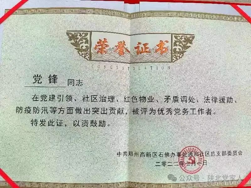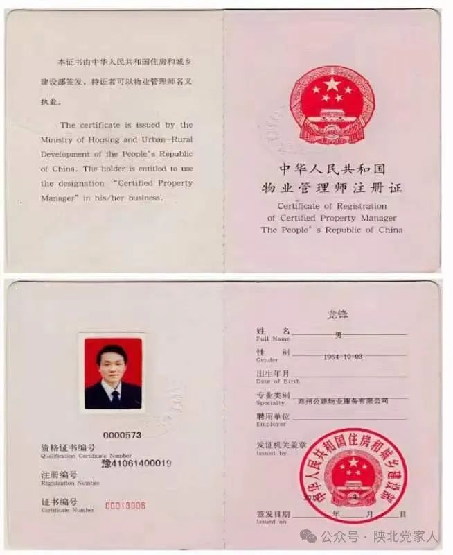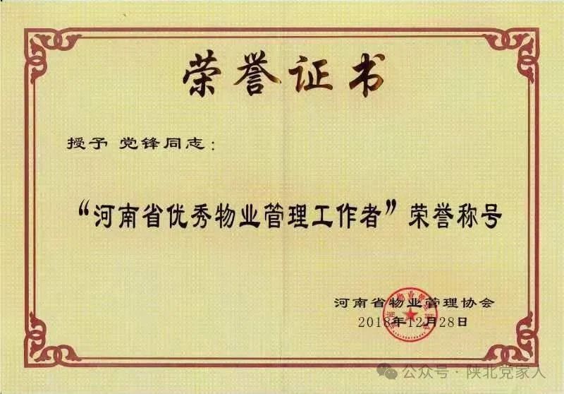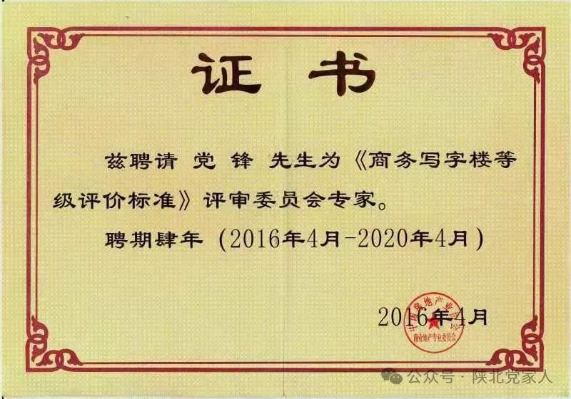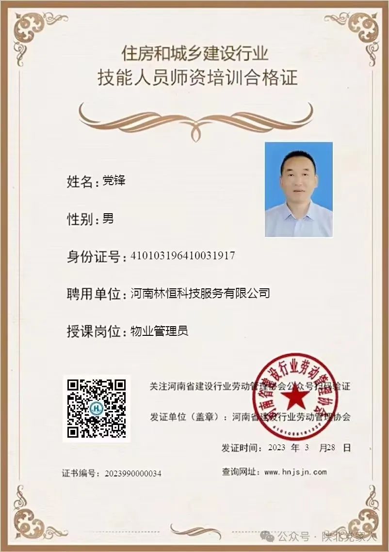 姓名:党锋, 性 别:男, 民族:汉 ,政治面貌:党员,技术职称:注册物管师高工 ,郑州市产业园区商会特聘专家。