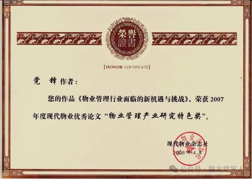 国家级刊物发表《物业费市场化形成非一放了之》、《共享互联模式下的老旧小区物管转型升级》《物权视角下民法侵权责任解析》《民法典对推进物业服务法治建设的思考》等论文三十余篇。