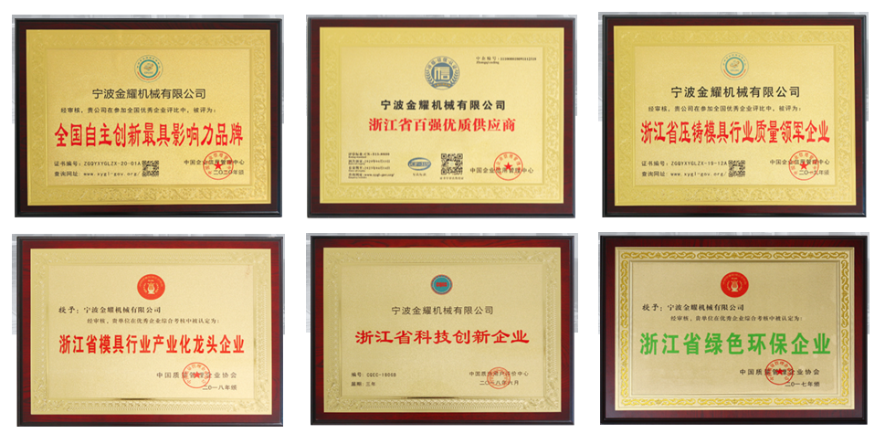宁波金耀机械有限公司地处东海之滨--宁波市北仑区大矸镇,厂房面22000多平方米,是宁波模具工业协会的会员企业。金耀机械创建于2007年,是以各类高难度的铝合金压铸模、镁合金压铸模、塑料模,及设计、开发、制造为主的专业模具制造企业,尤其主要从事铝合金压铸模具和各类铝合金压铸件。金耀机械坚持“树企业形象,抓质量管理,满足顾客并全面贯彻实施IATF16949:2016质量体系标准的期望”为宗旨,积极引进一大批具备品质管理及丰富模具设计制造经验的技术人才。