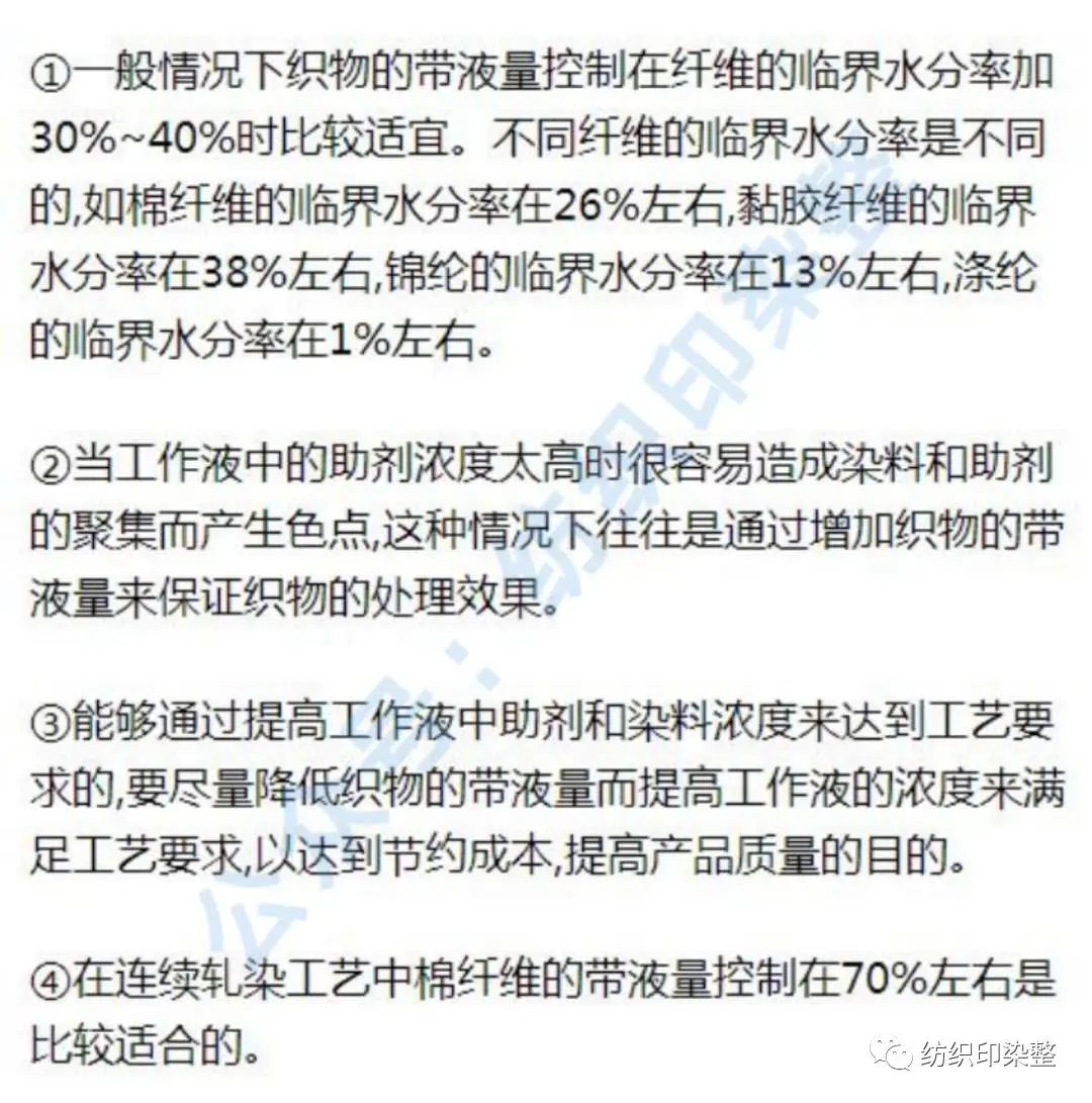 织物带液量的大小对产品质量有哪些影响?如何确定织物的带液量?