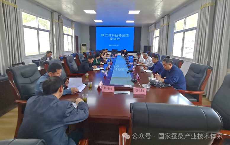 19日下午,特派团一行与镇巴县相关领导和负责人进行专题座谈。座谈会由镇巴县副县长邵永宏主持,参加会议的有县委副书记张海燕,组织部、农业农村局、市场监管局相关负责人,桑蚕、中药材、茶叶、魔芋、梨、畜牧等指导组联络员,国家科技特派团镇巴团顾问代方银教授、团长苏超研究员、桑蚕组团员包立军副研究员和廉喜红博士,蚕桑体系首席办人员陈鹏副教授等。