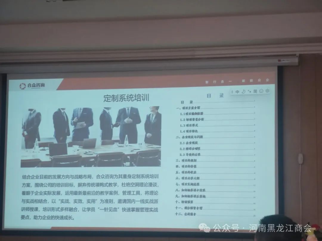 合众企业管理咨询董事长吴永生对孙冰会长一行表示热烈欢迎,并详细介绍了公司发展历程、业务范围及未来规划。合众咨询,是一家以中小企业为服务对象,以教育、咨询、项目孵化为一体的综合性企业解决方案供应商。公司成立于2006年,合众咨询始终秉承“为中小企业提供量身定制的解决方案,为中国经济文化发展贡献一份力量”这一历史使命,专注于企业教育培训、管理咨询、项目孵化等业务布局,立足河南,遍布中原。