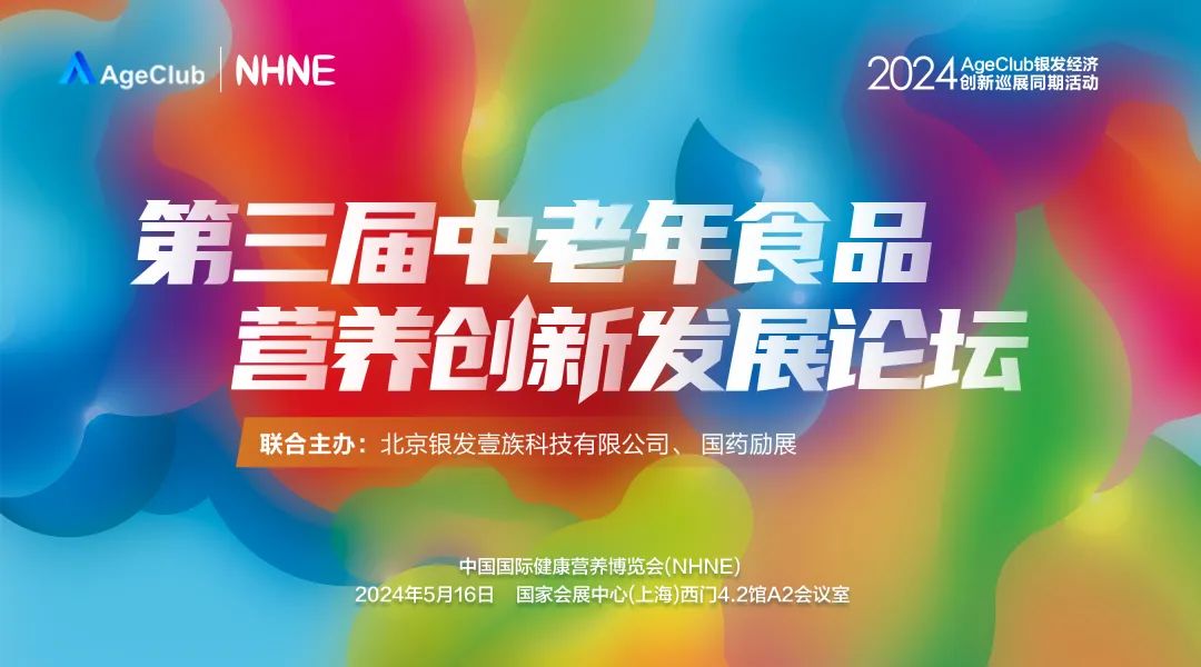 5月16日AgeClub携手国药励展,在中国上海国家会展中心举办会议活动——第三届中老年食品营养创新发展论坛,深度聚焦中老年营养消费赛道,邀请中老年营养行业资深专家、头部企业高管、创新创业者以及上下游企业代表同仁齐聚一堂,行业交流,共同促进行业正向发展。来论坛你可以get: