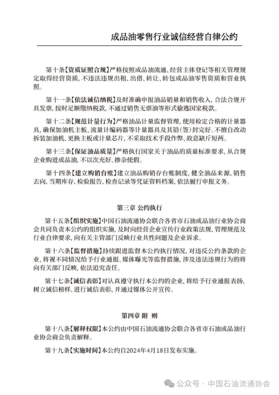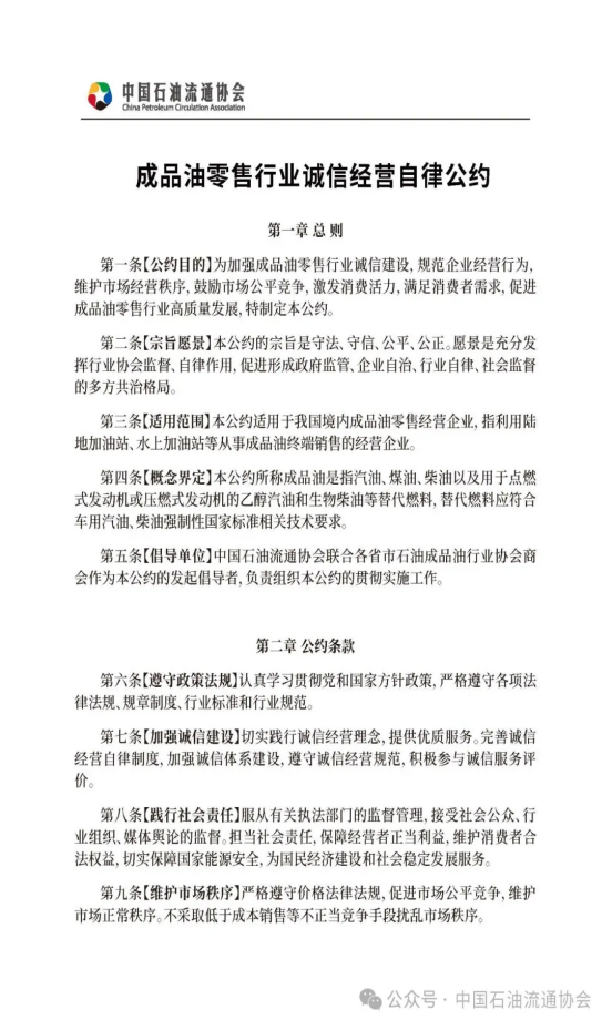 《成品油零售行业诚信经营自律公约》全文