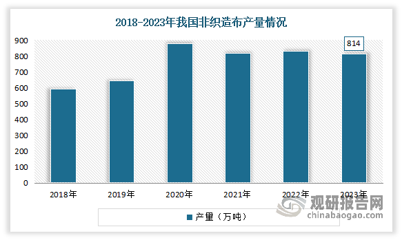 2023年我国非织造布行业处于疫后调整阶段。据中产协初步统计,2023年我国非织造布产量约814万吨,与2022年基本持平。