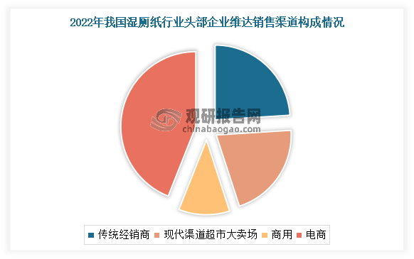 销售渠道多元化,线上渠道等非传统模式销售份额增加。以湿厕纸行业的头部企业的维达集团与中顺洁柔为例,2022年中顺洁柔来自传统销售模式的收益为40.8亿元,占比为47.6%,而来自非传统销售模式的收益为43.2亿元,占比为50.4%。具体来看,2022年维达来自传统经销商、现代渠道超市大卖场、商用及电商的等销售渠道之收益分别占总收益的24%、21%、11%及44%。