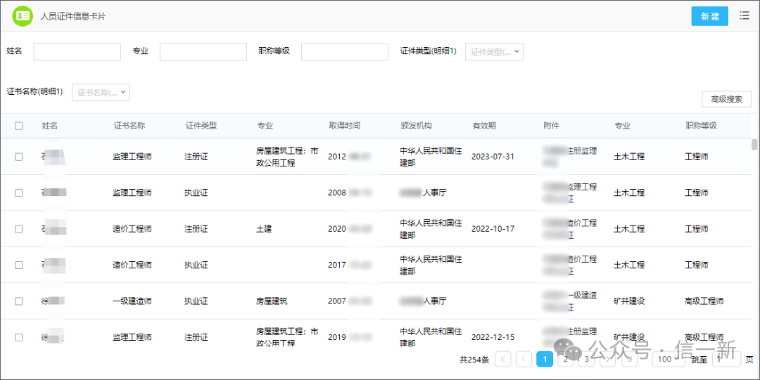 咨询行业专业人员多、人员证件多,泛微将人员证件形成台账管理,方便查询及调取。