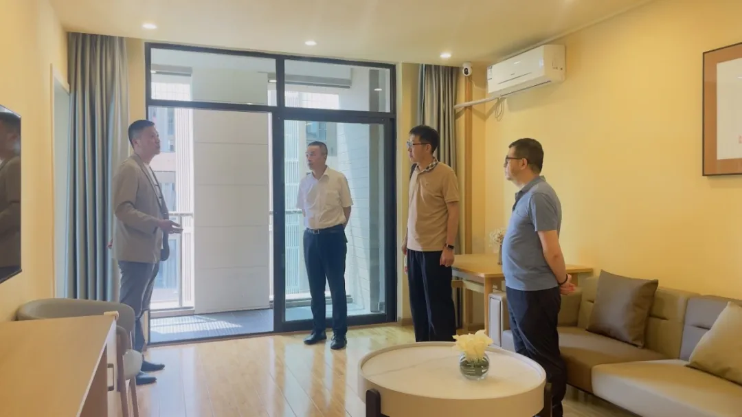 4月16日,成都金控置业有限公司董事长、总经理周晖一行参访川投盛榉公司所属川投舒适之家·武侯吉福院,川投盛榉公司党支部书记、执行董事、总经理杨飞陪同参观。