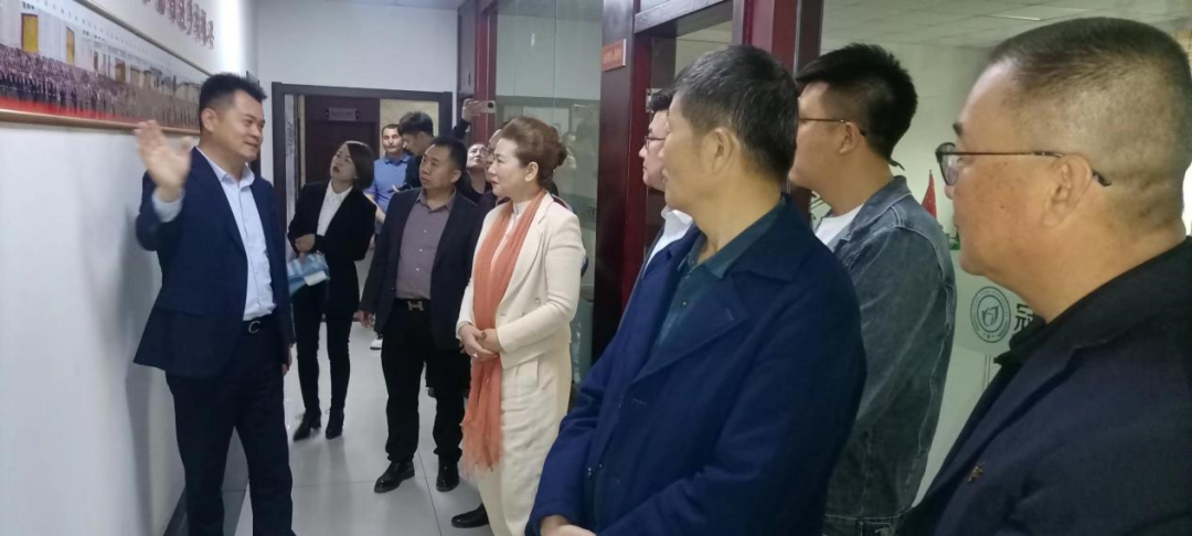 下午7:30分左右,邱滟一行继续在伊宁县城南中小企业园,走访商会常务副会长企业、伊犁冠通生物集团有限公司。在公司董事长尹胜的陪同下,邱滟一行参观了公司大厅文化墙、党建室、荣誉室。