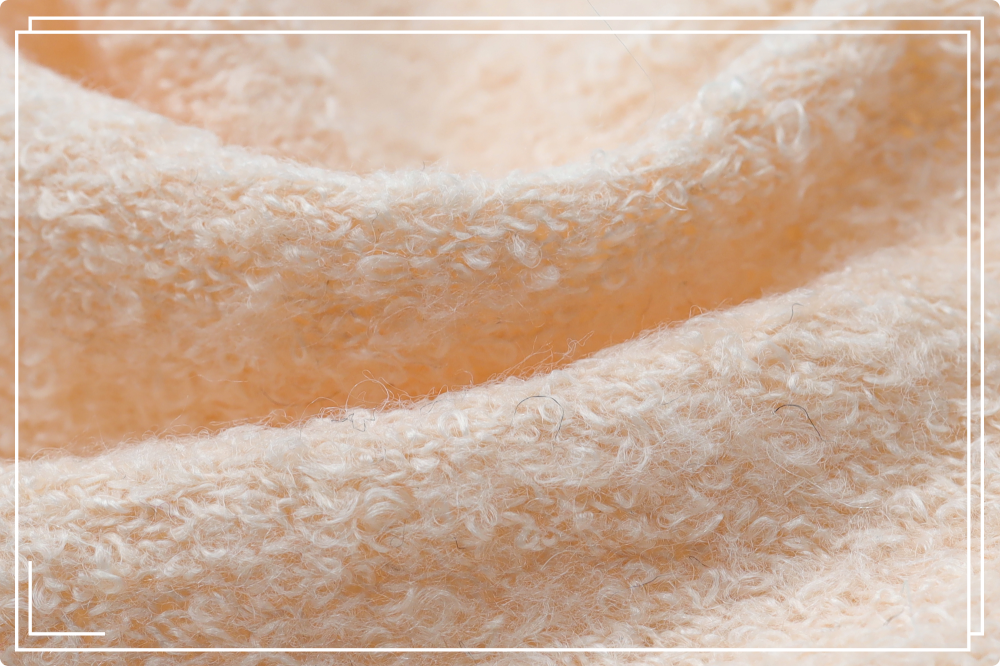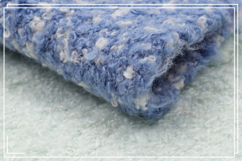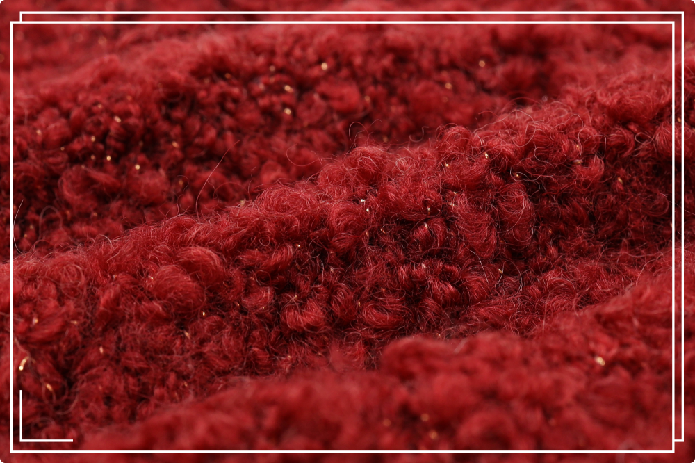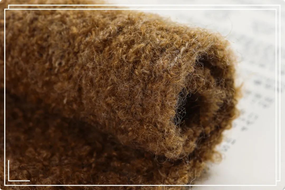 表面有圈圈的形状结构,能给人一种立体的3D效果,风格粗犷,不失细腻,织物厚实,有特别的外观效果,穿着柔软舒适,羊毛腈纶的成份保暖性超强,是冬季的必备品。