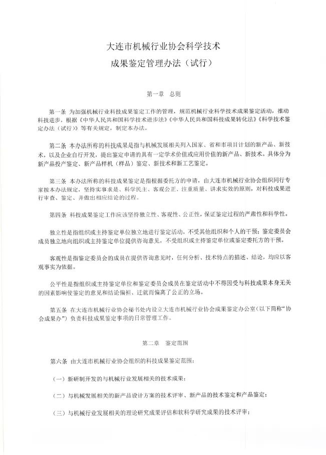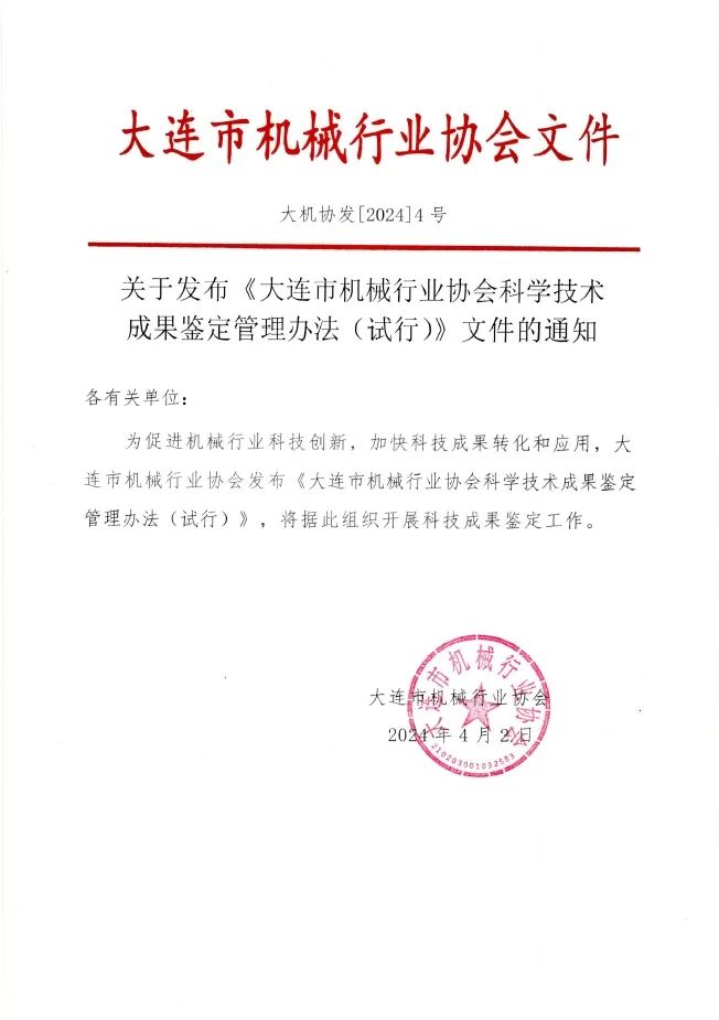 关于发布《大连市机械行业协会科学技术成果鉴定管理办法(试行)》文件的通知