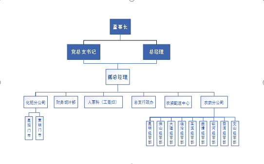公司注册地点位于昆明市官渡区民航路长润街1号,注册资本1376.43万元,公司按《公司章程》设有董事会、监事会,党总支等机构。公司设3个职能部门(总支行政办公室、财务统部、人事科),2个业务部门(农药化工分公司、化肥分公司);9个经营部(昆明、玉溪、大理、开远、普洱、临沧、曲靖、保山、文山);1个农资配送中心,位于昆明市跑马山碓臼村。