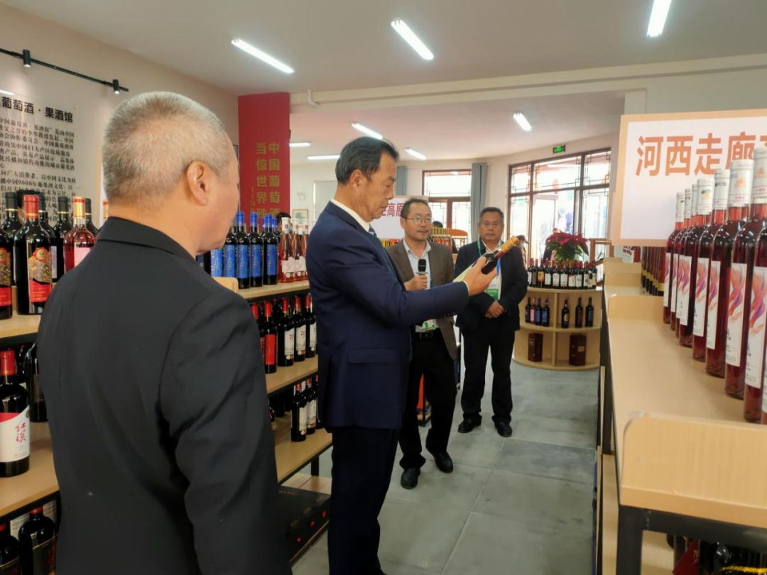 李华教授(左一)带领来宾参观中国葡萄酒果酒陈列