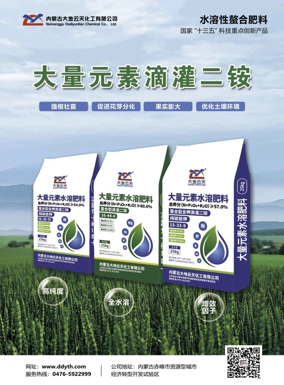 内蒙古大地云天化工有限公司(以下简称“大地云天”)是云天化股份有限公司、北京大地远通(集团)有限公司、云南沃加农业发展有限公司共同组建的有限责任公司。公司成立于2014年,坐落于赤峰高新技术产业开发区元宝山产业园。公司投资的120万吨/年缓控释肥项目一期2016年底投产,经过几年发展,已成为生产销售化肥(缓控释肥、复合肥、磷酸二铵、磷酸一铵、磷酸等)达百万吨的大型磷复肥企业。公司年营业收入超35亿元,利税5亿多元,员工700多人,间接带动就业3000余人。截至2023年,公司产能规模达到了年产50万吨磷酸、年产70万吨缓控释肥、年产25万吨复合肥、年产12万吨水溶肥,目前10万吨/年硫磷钛综合利用项目正在积极建设中。