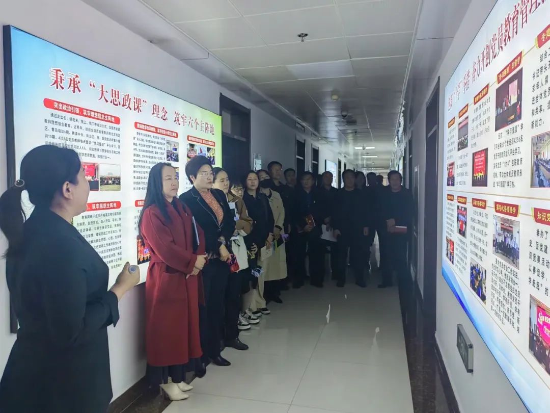 此外,参会人员还实地参观了教育局机关党建文化长廊,亲身感受了党建文化的魅力。同时,要求各基层党组织在会后自行参观新惠八小红色文化长廊、新惠七中廉洁文化长廊和党员活动室,进一步学习党建阵地建设的先进经验,提升自身党建工作水平。