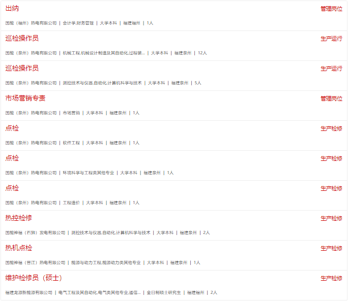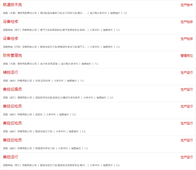 面向国家能源集团所属74家子分公司的生产、科研、管理岗位,涉及化学、机械工程、材料科学与工程、动力工程及工程热物理、电气工程、采矿工程、控制科学与工程、计算机科学与技术、交通运输工程、法学、经济学、管理学等学科。计划招录近3300人。