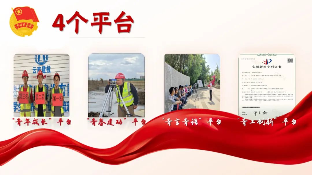 四公司团委根据新时代青年的普遍性需求,以助力青年职工成长成才为落脚点,为广大团员青年打造出“传”授经验、“帮”助成长、“带”出能力、“选”出人才的“青年成长平台”;打造出以岗位为依托,苦练内功、成就本领,淬火成钢、建功立业的“青春建功平台”;打造出以青年的视角和口吻,讲述青年故事、传递青年心声、宣传青年榜样的“青说青语平台”;打造出挖掘创新潜能,开发创新思维,以新技术、新工艺赋能公司提质增效的“青工创新平台”。