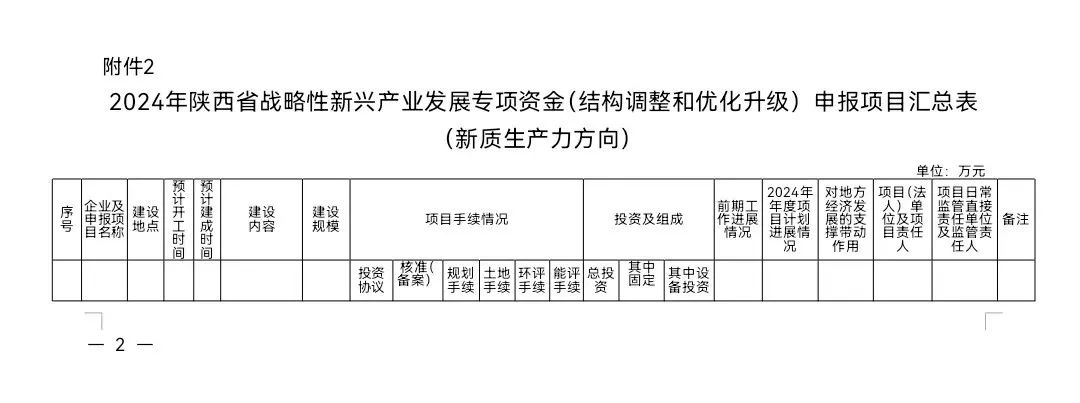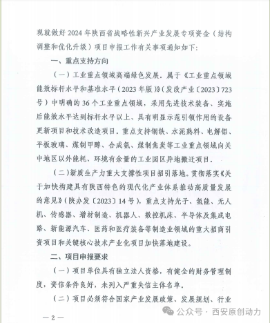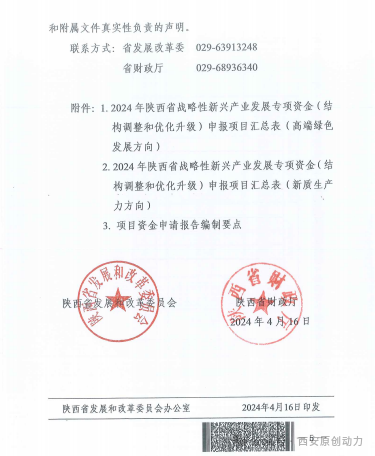根据陕西省发展和改革委员会 陕西省财政厅《关于做好2024年陕西省战略性新兴产业发展专项资金(结构调整和优化升级)项目申报工作的通知》要求,现开展项目征集工作。现就做好2024年陕西省战略性新兴产业发展专项资金(结构调整和优化升级)项目申报工作有关事项通知如下: