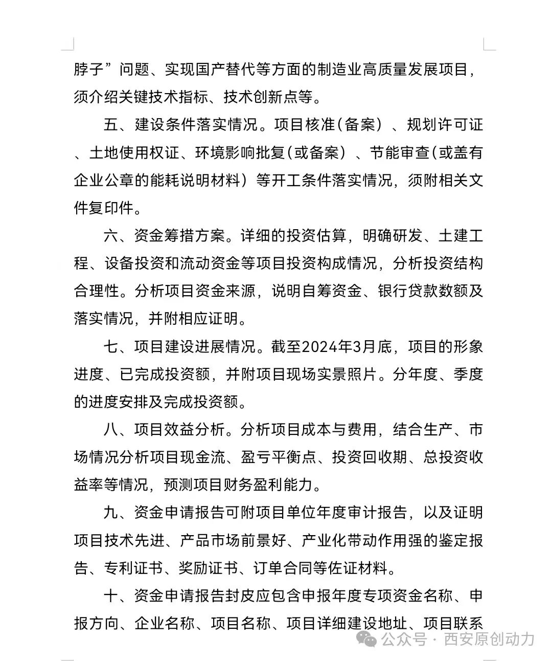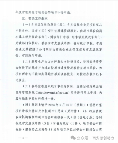 (四)新质生产力方向具体要求:一是重点支持技术水平高、产业带动能力强、对地方经济发展有较好支撑作用的重大项目,不支持在建项目和已投产项目;二是项目总投资原则上不低于2亿元;三是项目单位已与项目所在地政府(开发区管委会)签订实质性落地投资协议,项目用地已落实;四是核准(备案)、环评、规划等前期手续取得相应主管部门支持性意见,还须提供第三方专业机构出具的能评报告;五是重点支持行业龙头、制造业单项冠军、专精特新“小巨人”等企业项目建设。