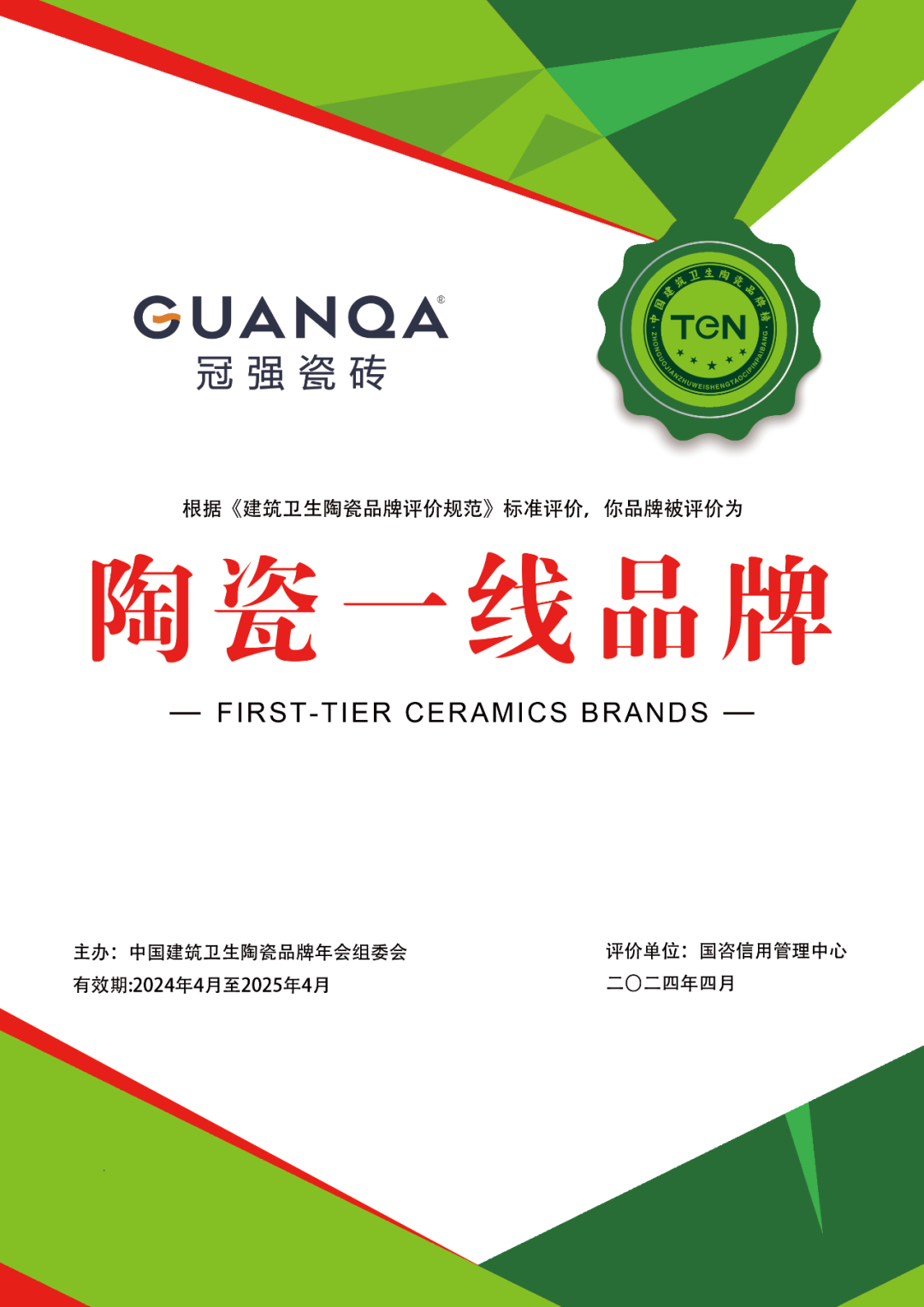 风好正是扬帆时,奋楫逐浪向未来。每一份荣誉,都是砥砺前行的力量。未来,冠强瓷砖将保持战略定力,多措并举加强品牌建设与创新,向高质量发展大步迈进!