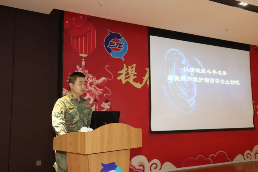 解放军某部政治指导员还为飞龙公司的员工们做了国防安全教育专题授课。通过案例分析、图片展示等形式,详细介绍了当前国家面临的安全形势以及国防安全意识的大众化、普通化。企业员工认真聆听,积极提问,与官兵们互动交流,进一步增强了对国防安全的认识和理解。