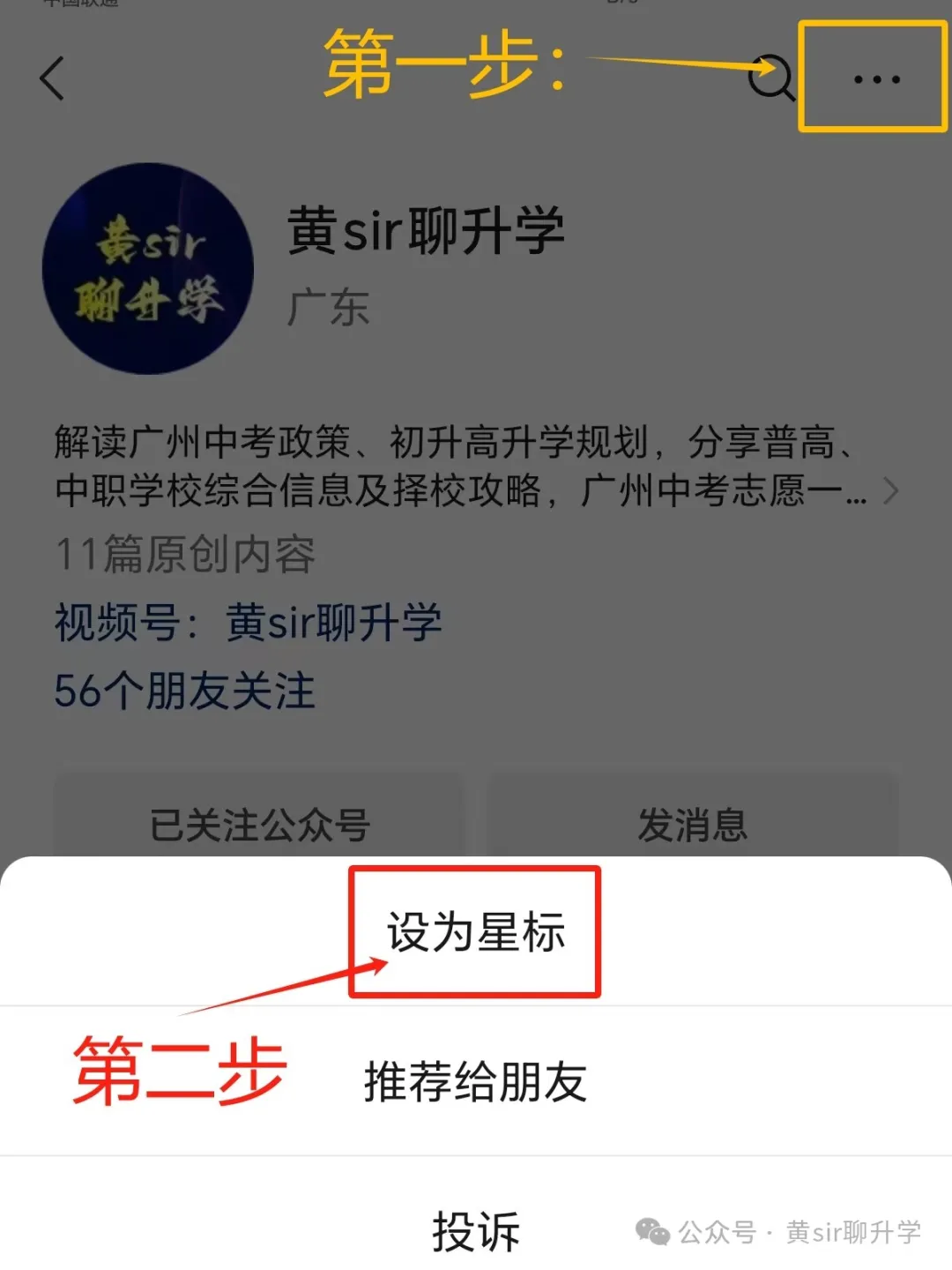 点击右上角“…”设为星标