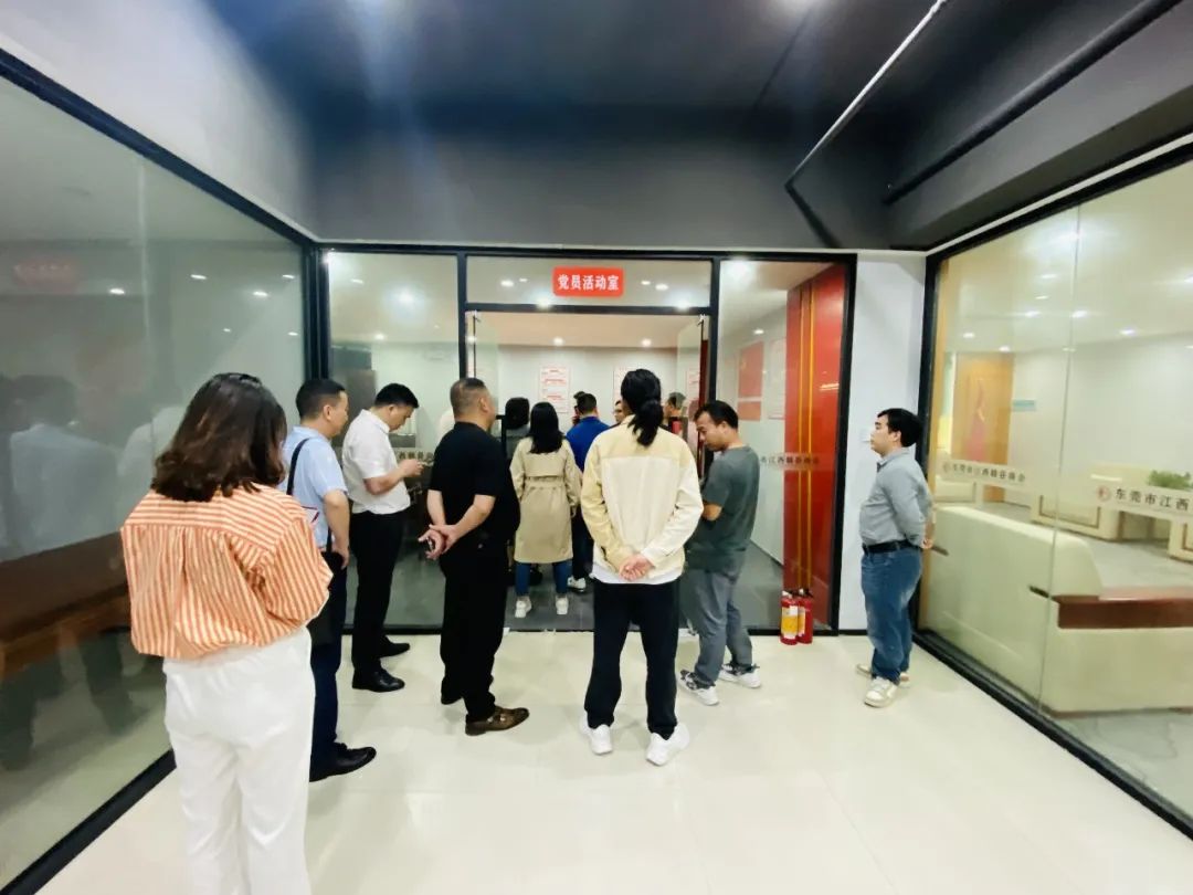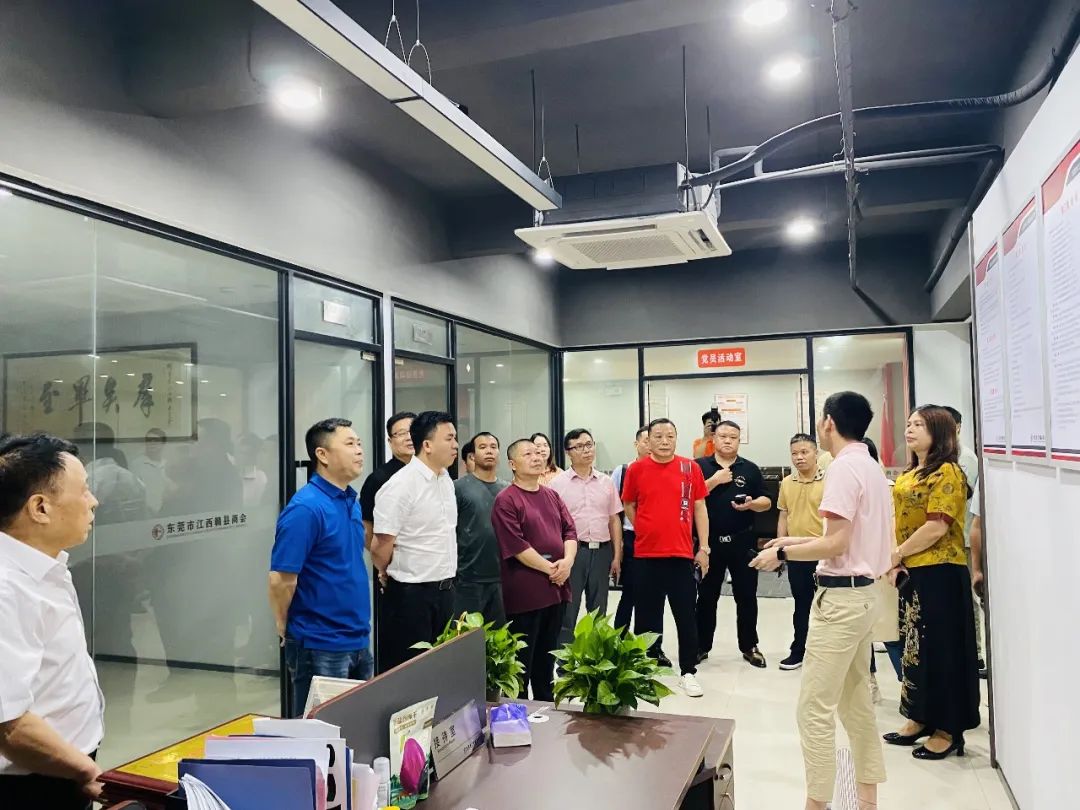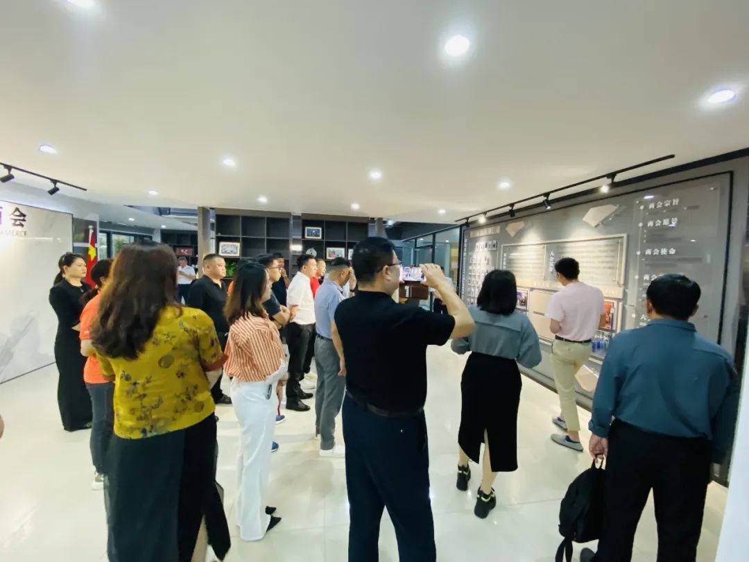 区工商联主任胡聚章、区政法委主任刘新标、赣州市虔州商会常务副会长王新民等一行人在我会秘书长肖诚飞的陪同下,先后参观了我会商会大厅,宣传墙、贵宾室、党建室、会议室等办公环境。