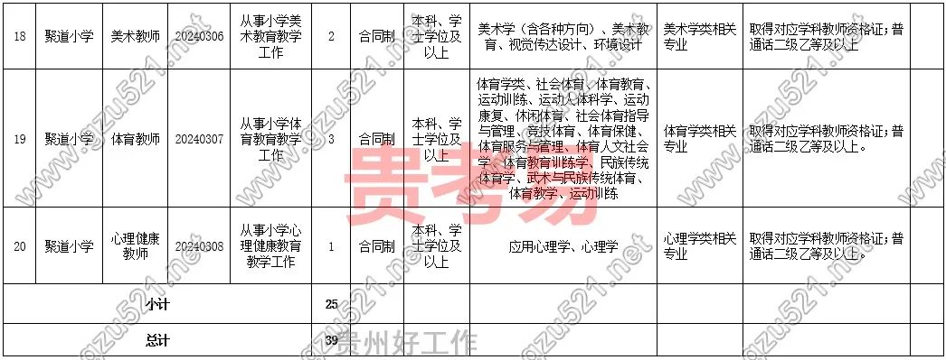 贵州宏财聚道投资有限责任公司于2016年3月成立,注册资本1亿元,是贵州宏财投资集团有限责任公司出资成立的全资子公司。公司主营业务为教育咨询、教育管理、教育培训、房屋租赁等。经营宗旨是:以市场经济为基础,积极参与教育事业的发展,促进地区教育水平提升和经济发展,实现政府、社会、企业共赢。 因公司发展需要,现面向社会公开招聘39名合同制工作人员,为保证招聘工作顺利进行,根据《盘州市国有企业公开招聘工作人员实施细则(试行)》相关规定,结合工作实际,特制定本招聘简章。 坚持“党管干部”“公开、平等、竞争、择优”“德才兼备、以德为先、人岗相适、人事相宜”和“依法依规办事”的原则,采取“公开考试、严格考察、平等竞争、择优录取”的办法,实行公开报考条件、公开考试程序、公开考试结果“三公开”制度。招聘工作按照编制招聘计划、发布招聘简章、报名、资格初审、笔试、资格复审、面试、体检、考察、公示、聘用审批的程序进行。 贵州宏财聚道投资有限责任公司2024年面向社会公开招聘工作人员39名。具体招聘职位详见《贵州宏财聚道投资有限责任公司2024年面向社会公开招聘工作人员职位一览表》(以下简称《职位一览表》)。 本科及以上毕业学历人员(其中,2024届普通高校毕业生不含委培生、定向到具体单位工作的定向生)。 2.拥护中华人民共和国宪法和法律,拥护中国共产党的领导和社会主义制度。 3.具有良好的政治素质和道德品行,具有为人民服务的思想,遵纪守法、诚实守信。 5.具有符合职位要求的工作能力,以及拟报考职位所需的有关资格条件。 6.报考年龄要求:年龄在18周岁以上(2006年4月25日及以前出生)、40周岁以下(1983年4月26日及以后出生)。 1.因犯罪受过刑事处罚的。受处分期间或者正在接受纪检监察机关、司法机关立案调查未结案的人员。 6.在各级公务员招考、事业单位招聘考试中被认定有舞弊等严重违反考试录聘用纪律行为且仍在不得报考期限内的人员。 7.任职(工作)或服役期间发生重大责任事件;曾因贪污、行贿受贿、泄露国家机密等原因受到过党纪、政纪处分或在近三年年度考核中曾被确定为不称职(不合格)的。 在“盘州市人民政府网”“宏财视界”“聚道教育”微信公众号发布公开招聘公告。 2.报名时间:2024年4月25日9:00至2024年4月29日17:00 报名按以下程序进行:进入贵州宏财聚道投资有限责任公司2024面向社会公开招聘工作人员网上报名系统:http://xnrc.easyzp.com/index.php/exam/?EXAMID=2757,注册报名。 报考人员须仔细阅读“招聘简章”并签署网上报名诚信报考承诺书。如实填写《贵州宏财聚道投资有限责任公司2024年面向社会公开招聘工作人员报名信息表》(以下简称“报名信息表”),并上传本人近期免冠2寸蓝底正面证件照(jpg格式、20KB以下)。 注意:考生在提交报名信息并成功上传照片或因审核未过重新修改报名信息后,都须进行提交报名申请操作。点击“提交报名申请”键后,考生将不能对报名信息进行修改。若不点击“提交报名申请”键,将无法审核报名信息,导致报名失败。 报考人员只能选择一个职位进行报名,应及时登录查看详细信息栏目中的审核状态。通过资格审核的报考人员,不得再报考其他职位。报考人员应认真核对是否符合所选职位要求的资格条件,报考人员提供虚假报考申请材料的,一经查实,即取消进入下一环节的资格,责任由报考人员自行承担。 报名与资格审查结束后,公布报名总人数和每个职位报名人数。报名人数与招聘计划人数达不到3:1比例的职位,该职位招聘计划予以减少或取消。职位招聘计划减少或取消的,该职位的报考者不得进行职位调整。 资格审查时间为2024年4月25日至2024年4月29日17:00。 1.资格审查由招聘工作小组统一组织实施。资格审查负责人员根据报考人员填写的信息,对照《招聘简章》和招聘岗位所需的资格条件进行资格审查,对报考人员提交的《报名信息表》必须在提交后24小时之内审核完毕。经审查合格的予以确认;对审查不合格的应说明理由;对照片质量不符合要求的提示报考人员重新上传照片。通过网上报名资格审核的人员,须下载并打印留存报考人员的《报名信息表》,供资格复审环节时使用。 2.截至2024年4月29日17:00,已经提交报名申请,但由于报名表信息不完整、错漏、照片不符合规定等原因导致审核未通过的人员,视为报名失败。最终报名情况在“宏财视界”“聚道教育”微信公众号上公示。 注:提交的报考申请材料应当真实、准确、完整。报考者因身份证过期、信息填写失误、照片模糊变形、未按时提交报名信息等原因,导致网上资格审核未通过,后果由报考者本人承担。 4.线上打印《笔试准考证》。通过资格审查后,报考人员登录“贵州宏财聚道投资有限责任公司2024年面向社会公开招聘工作人员网上报名系统”打印《笔试准考证》。网上打印笔试准考证时间待定。 1.笔试内容:报名成功人员须参加统一组织的笔试,笔试采取闭卷考试,考试不指定用书,笔试成绩满分100分。 笔试时间:详见《笔试准考证》(报名结束后及时面向社会公布笔试时间等相关事宜) 笔试地点:详见《笔试准考证》,具体安排如下:考生须同时持有效《居民身份证》和《笔试准考证》参加笔试。笔试成绩在“宏财视界”“聚道教育”微信