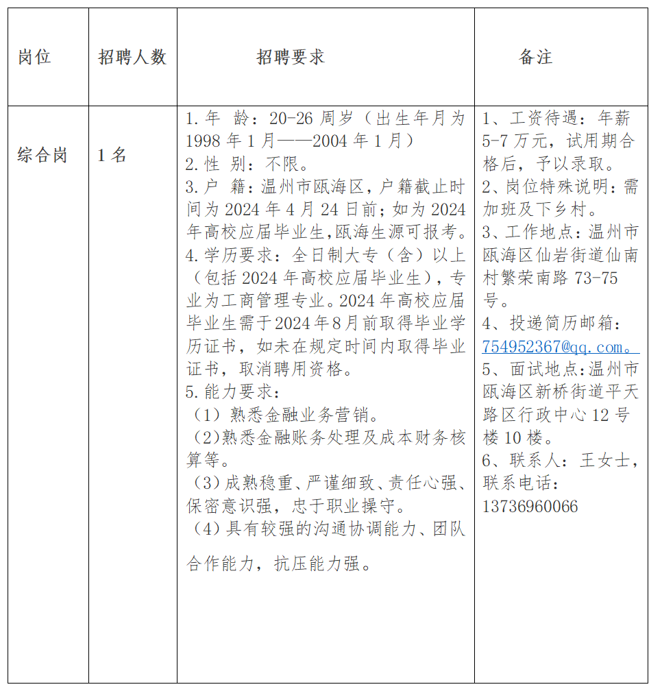 本次招聘综合岗1名,合同制员工,岗位招聘要求见附件1