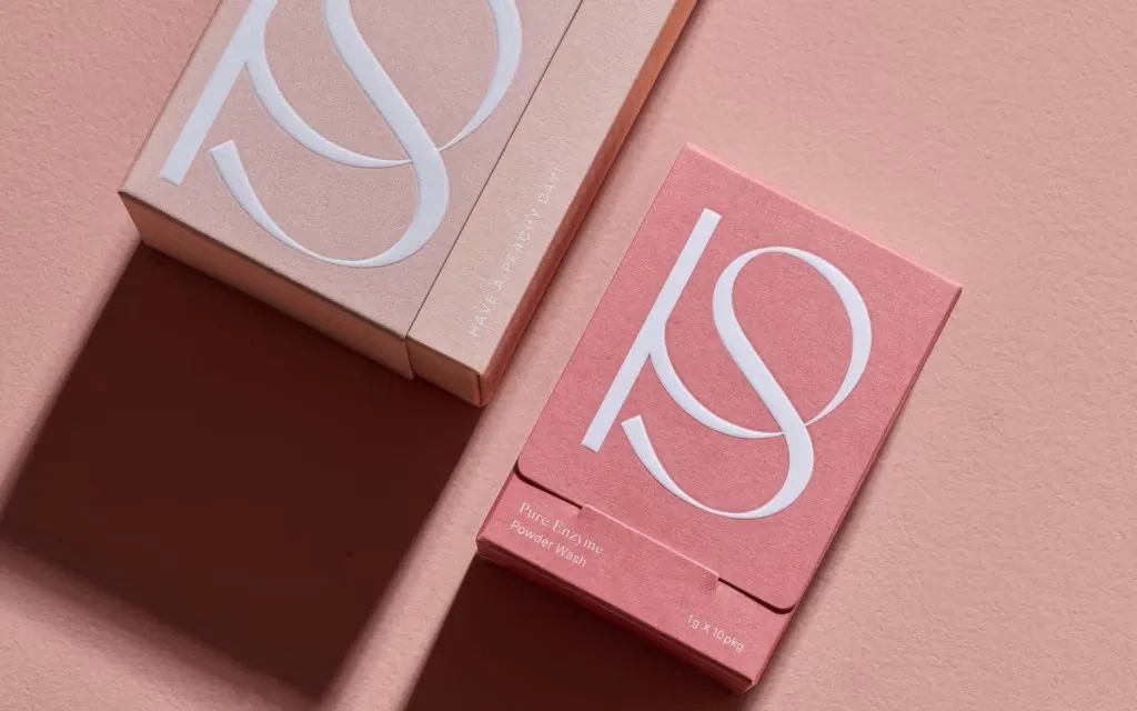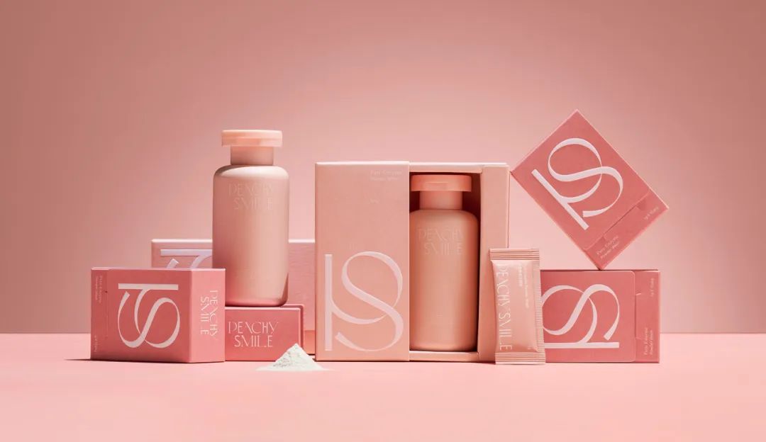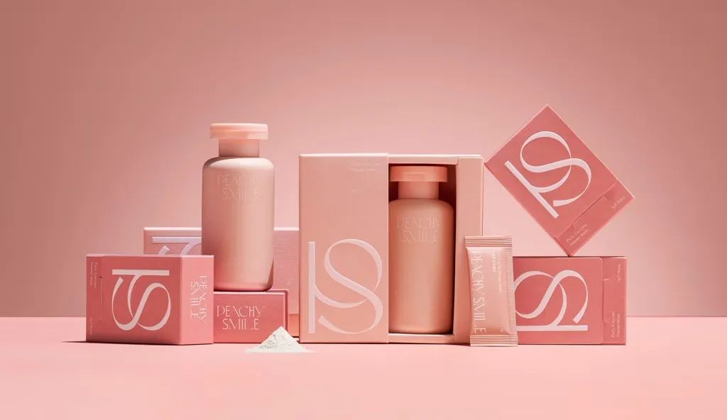 Peachy Smile的包装设计简约而不失优雅,色彩运用恰到好处。柔和的浅桃色调,如同春日里初绽的桃花,给人一种舒缓而温和的感觉。包装上的“Peachy Smile”字样,以及那个醒目的“PS”标志,都体现了品牌对于简约美学的追求。