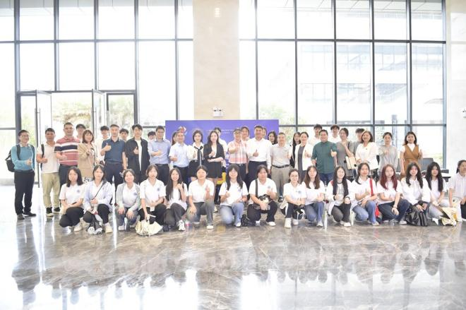 为进一步深化产教融合,推动学科专业建设,探索数字贸易人才培养方向,4月18日下午,数字经济产业学院常务副院长舒光美、专任教师王三安、刘宇宏、陈若欣、辅导员陈雅玲带领30余名学生代表参加广州知识城领军人才集聚区成功举办的AIGC引领数字贸易创新发展论坛暨黄埔数字贸易人才港揭牌仪式。