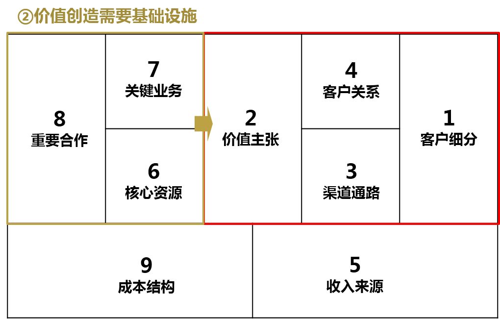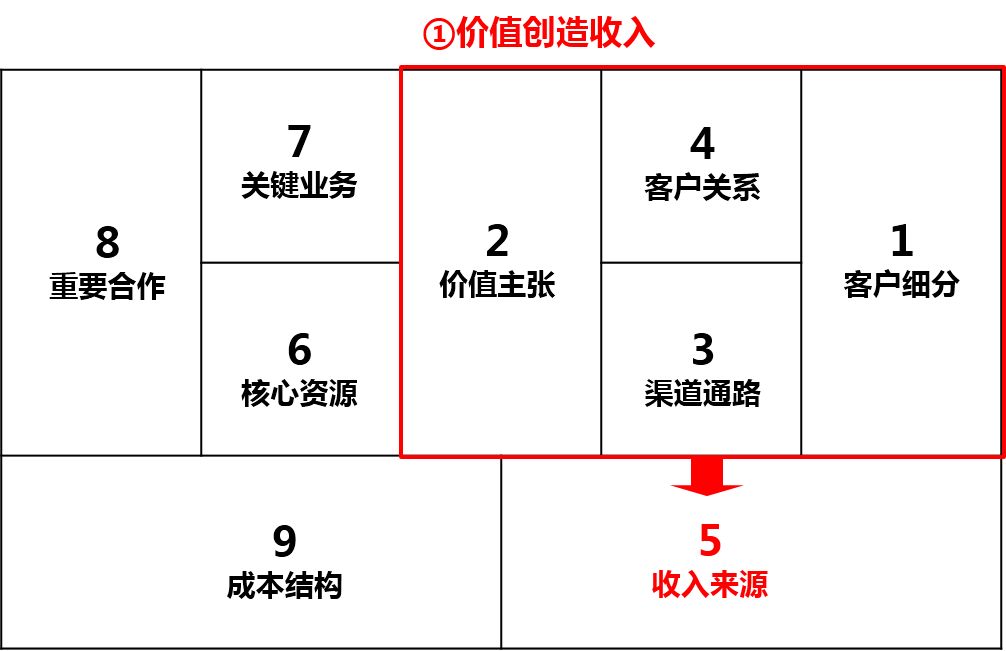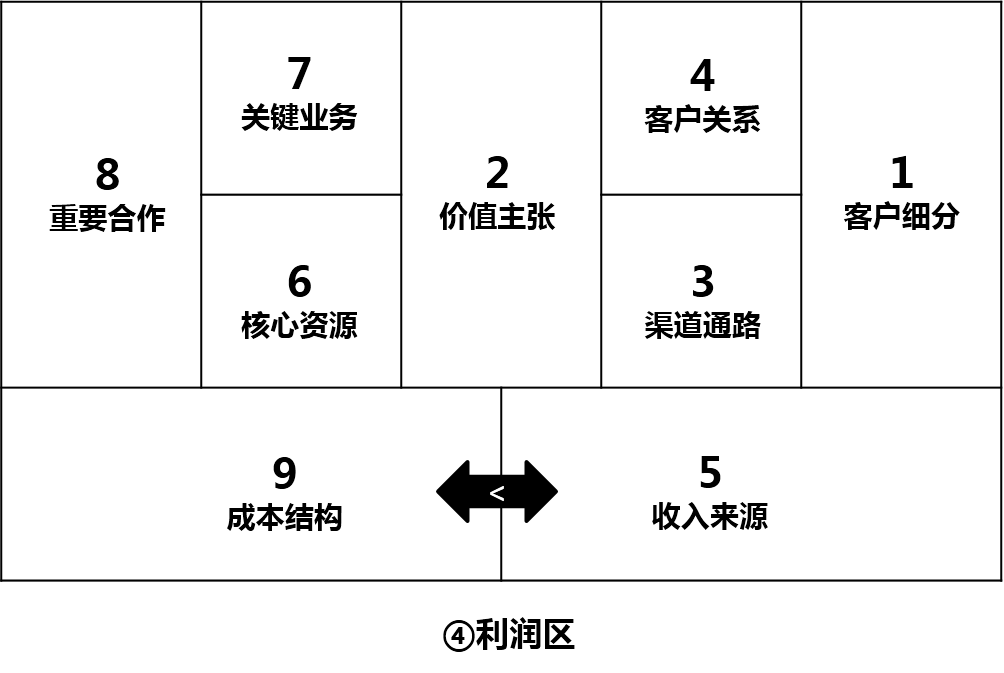 商业画布,使用者需要按照一定的顺序(如下图数字顺序)
