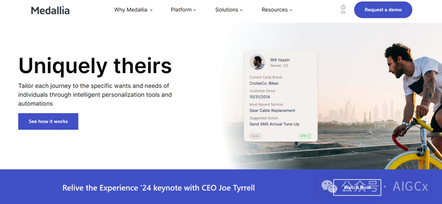 Medallia 提供客户体验管理解决方案,结合AI技术来分析和解释客户反馈,以便企业能更好地响应用户需求。