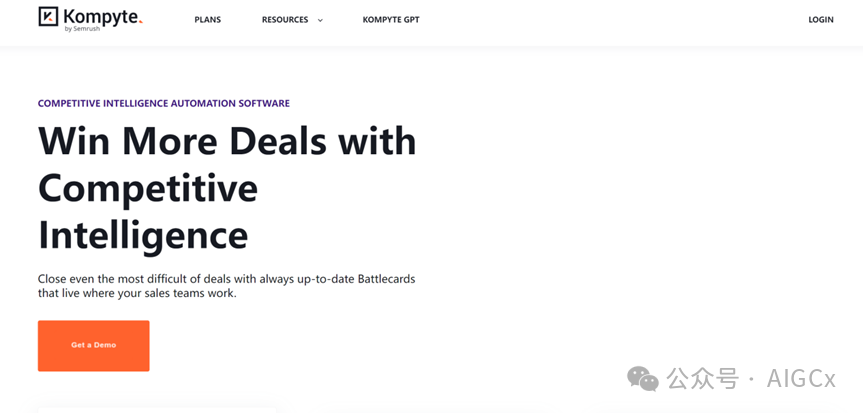 Kompyte 是一家提供竞争对手分析和市场情报的平台,可能使用AI技术来监测和分析竞争对手的行动。
