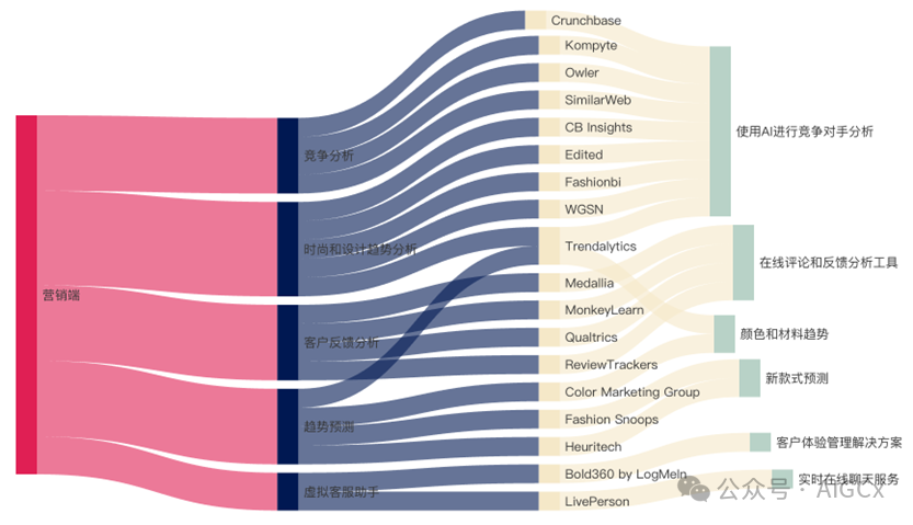 为了便于直观了解,构建了工具图表,下面将从营销与客户关系管理等环节,介绍各个环节中实用的AI工具。
