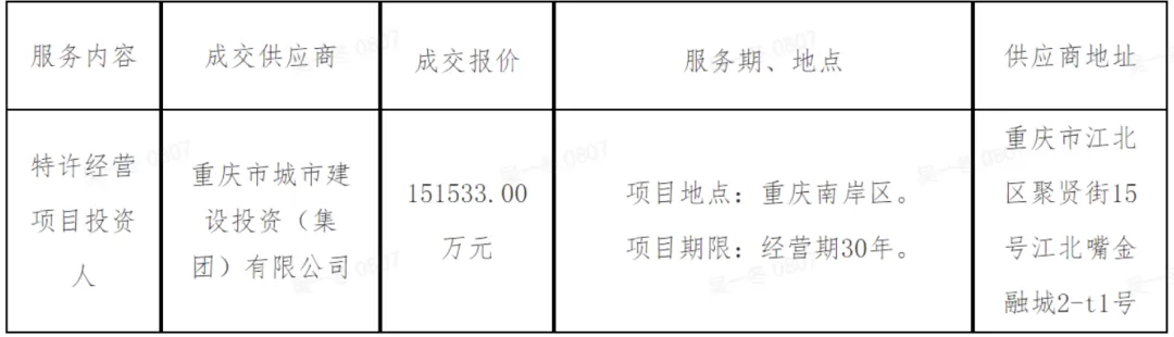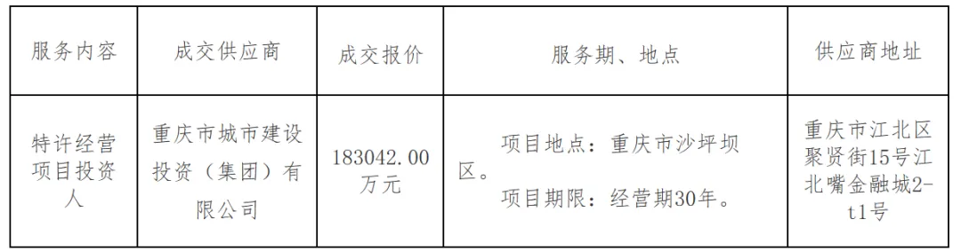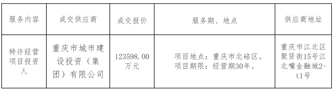 两江名居公租房住宅部分特许经营项目中标(成交)信息