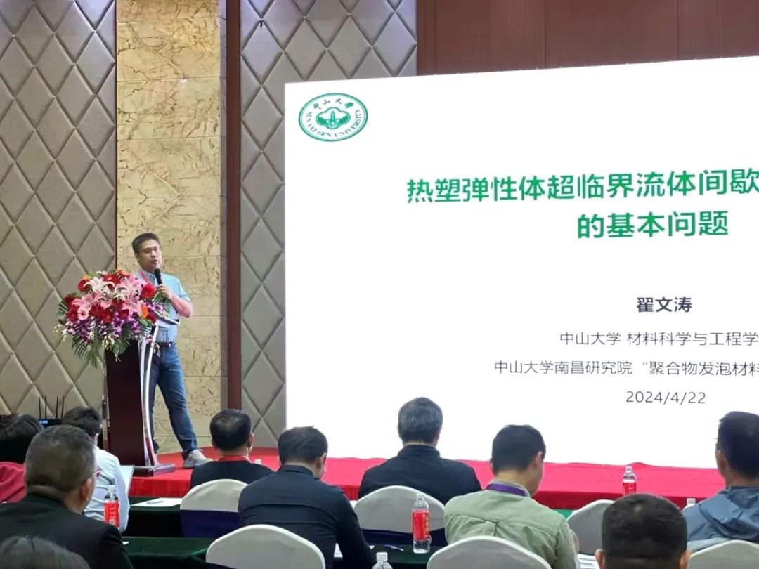本次培训会旨在进一步提高聚合物泡沫加工企业工程技术人员的技能水平,促进企业技术革新和产品质量的提升。参与本次研修班的人员有塑胶工程师及相关负责人、聚合物发泡材料研发应用加工相关负责人、工艺及设备技术人员、塑料机械厂技术人员、塑料改性企业工程师以及各地高校师生。中山大学材料科学与工程学院教授、中山大学南昌研究院院长助理兼聚合物发泡材料研发中心主任翟文涛作为主讲老师在培训会上为大家带来了《热塑弹性体超临界流体间歇发泡过程中的基本问题》主题授课,现场气氛热烈,学习氛围浓厚。