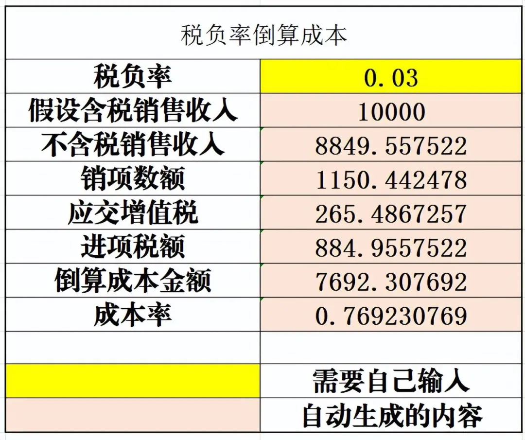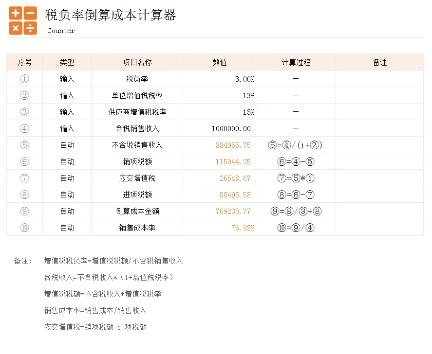 税负率倒算成本
