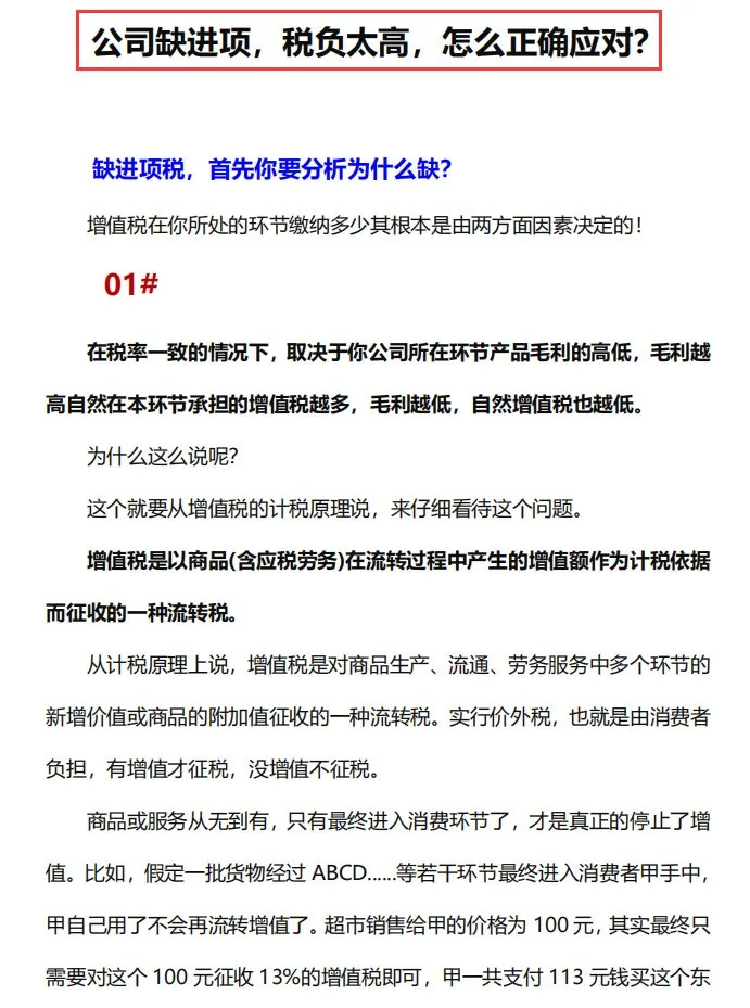 缺进项税负太高怎么应对