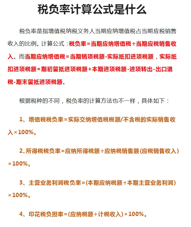 税负率的计算公式是什么