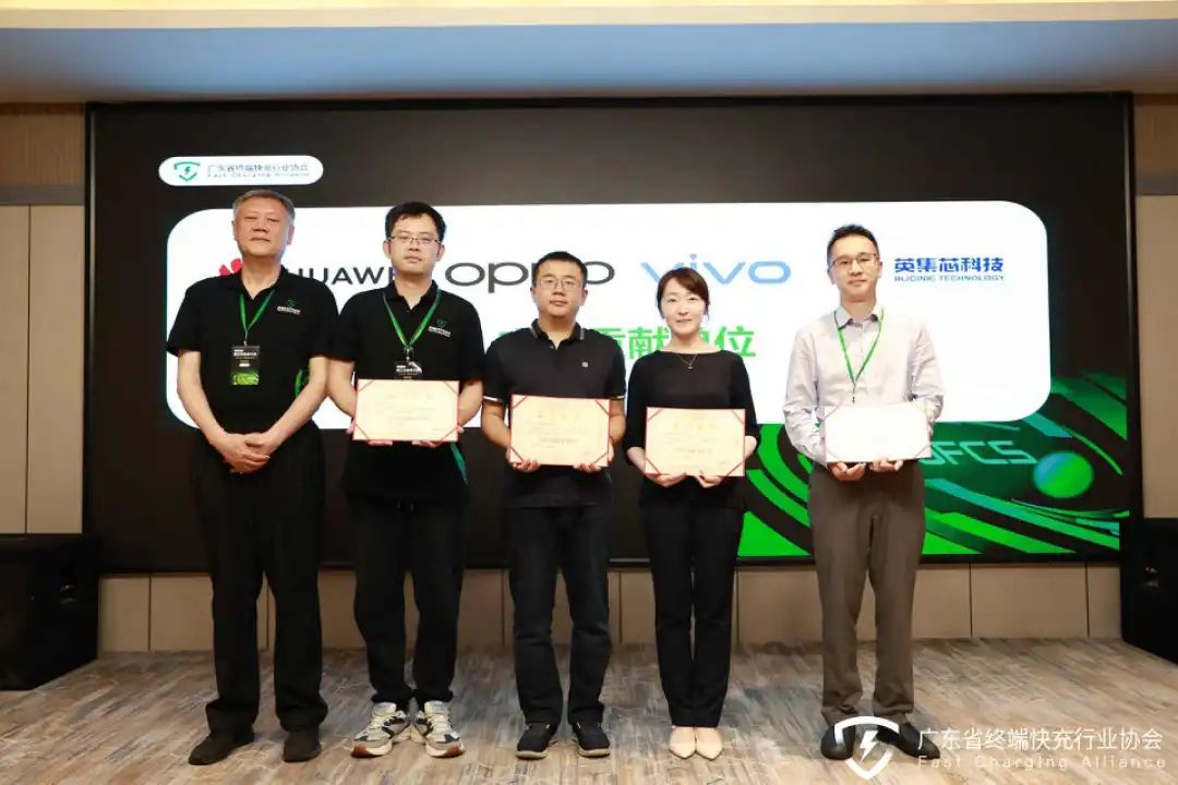 2023年度“突出贡献单位奖”,获奖单位为:华为终端有限公司、OPPO广东移动通信有限公司、维沃移动通信(深圳)有限公司、深圳英集芯科技股份有限公司。