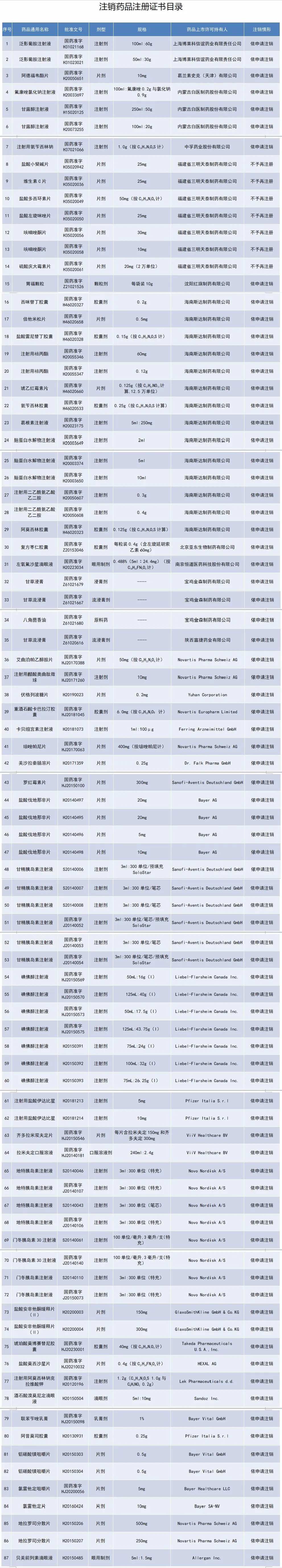 87个药品注册证书被注销
