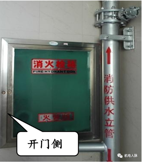 3)室内消火栓箱的安装应平正、牢固,箱体垂直度允许偏差为±3mm;箱门的开启不应小于120°。采用石材等装饰材料的消防箱门应开启灵活(开启拉力≯50N)。