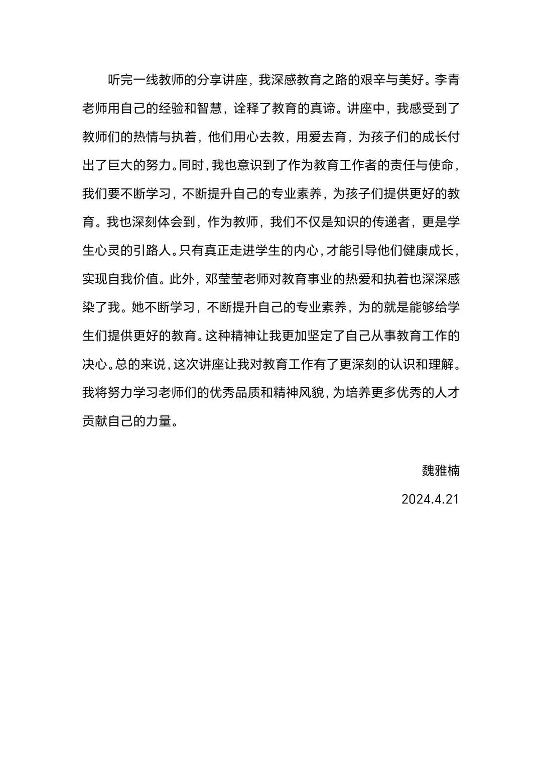 讲座结束后,支部团员还分享了自己在教育过程中的成长和收获,对两位老师宝贵分享的感谢和对未来学习的展望。这些真切的故事让我们更加深入地理解教育的意义和价值。