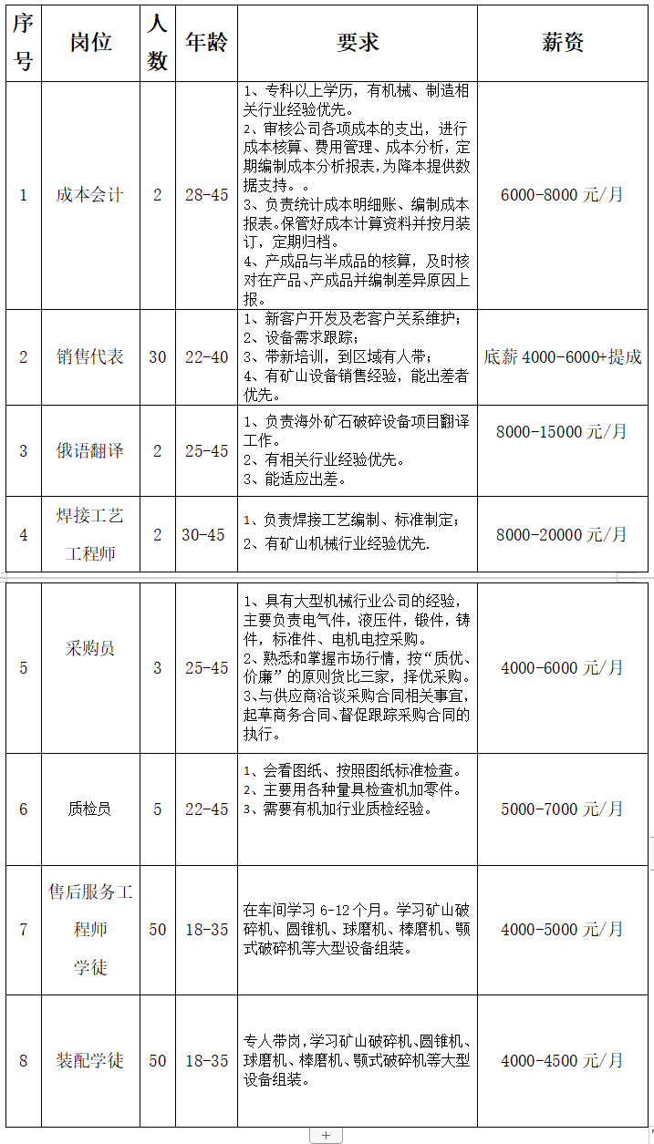 总部设立于辽宁沈阳,公司生产基地占地面积350余亩,员工1200余人,通过ISO9001质量管理体系及ISO14001环境管理体系认证。现招聘职位如下: