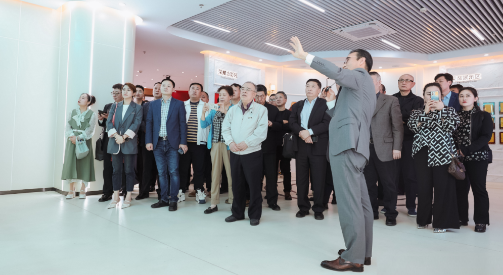 韩金明董事长对各位领导嘉宾的到来表示热烈的欢迎,并带领来宾参观和治友德企业展厅,亲自热情讲解了和治友德秉承“弘扬养生文化,造福人类健康”的梦想初心,以“和谐、共治、友爱、厚德”为企业核心价值观,积极践行国家“一带一路”倡议,坚定走全球化发展战略,打造全球化健康产业平台的发展历程与成绩,介绍了和治友德在未来的发展规划以及持续推进企业提质升级与高质量发展的情况,得到来宾们的高度认可与好评。