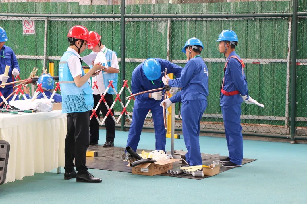 在电缆头制作的竞赛中,我们队伍稳扎稳打,在细节处精益求精,提前二十分钟完成了比赛,展现了过硬的本领和出色的协作能力。