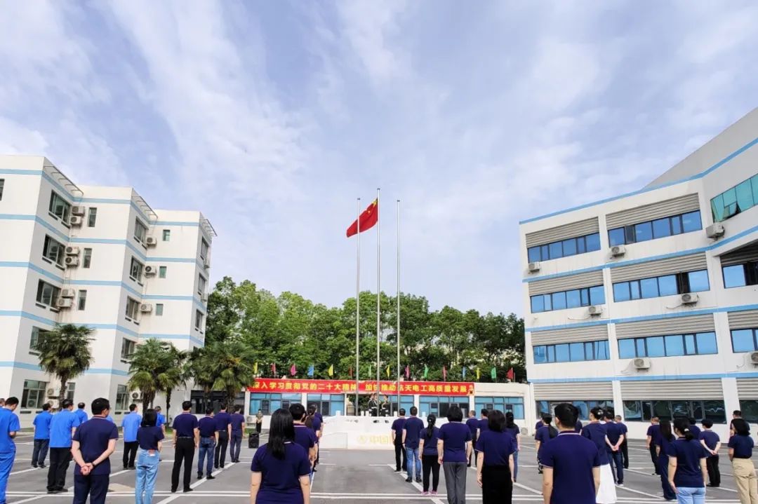 航天电工举行升旗仪式,开展形势任务教育,勉励广大干部职工大力弘扬航天精神,推动高质量发展,助力航天强国建设。公司在家领导班子成员,本部和辖属单位1800 余名干部职工,分别在所在办公场所参加升旗仪式和相关活动。本部升旗仪式由党委副书记、纪委书记徐金源主持,总经理、党委副书记周勇华讲话。升旗任务由江汉大学国旗仪仗队承担。